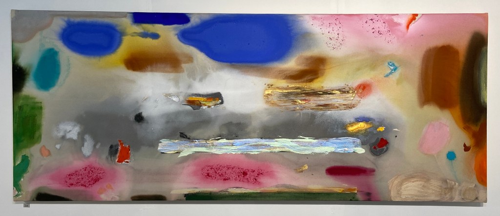 The Language of Colour is a joint exhibition with Nigel Moores who lives, as does Patrick, in South Devon. Both exhibit large canvases and small works. The latter includes Patrick’s intriguing study, above, of St Augustine’s first monastery in Skellig, Co Kerry in South West Ireland. It has more distinctively figurative elements than most of his work and, much as I love the purely or mostly abstract paintings, I’d be happy to take this evocative image home.