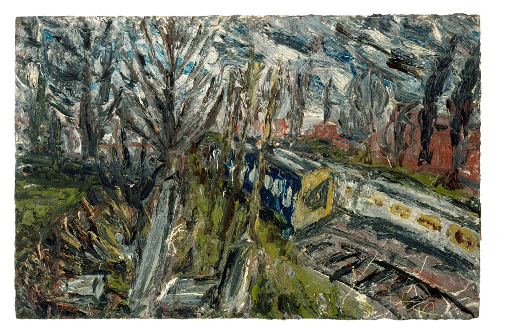 Like Leon Kossoff I spent most of my adult life living in Northwest London, latterly close to him and in a situation very like his, where the back garden is bounded by a railway line. The sound of passing trains and their flashing lights in the dark was a comforting experience, connecting me with friends I knew who lived near stations along the line. So this is the painting I’d choose to take home to spark memories of those times and places.