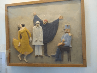 Adept as both a painter and a sculptor, this duality found a perfect outlet in painted plaster stage sets and reliefs – colourful and pictorial yet using the plasticity and finger touches of clay. Some artists, including Giacometti, held the view that painted sculpture is the highest form of the art. The classical friezes of the Parthenon were originally richly coloured.